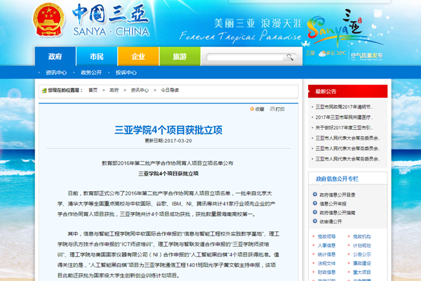三亚市人民政府网报道我校4个项目获批立项