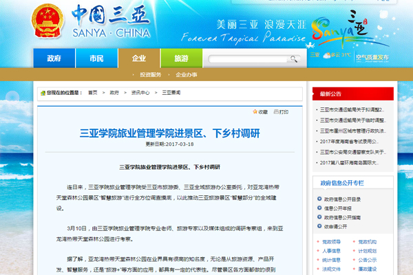 三亚市人民政府网报道我校旅业管理学院进景区、下乡村调研