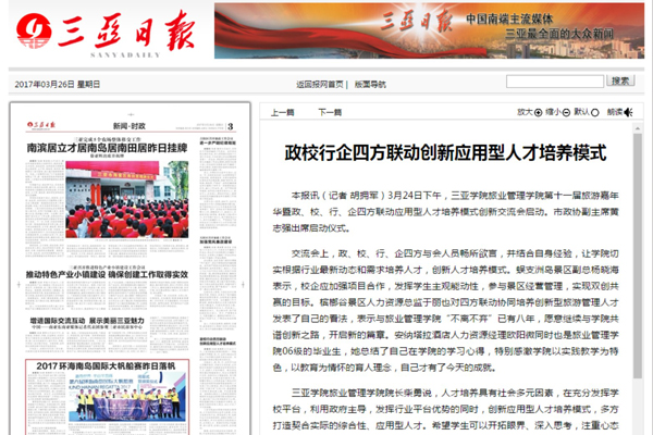 《三亚日报》报道旅业管理学院第11届旅游嘉年华启动