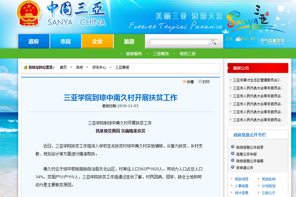 三亚市人民政府网报道我校到琼中南久村开展扶贫工作