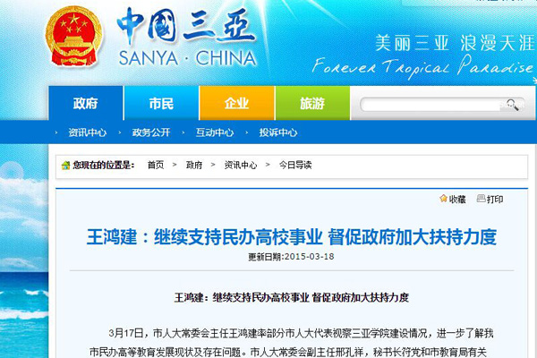 三亚政府网继续支持民办高校事业督促政府加大扶持力度