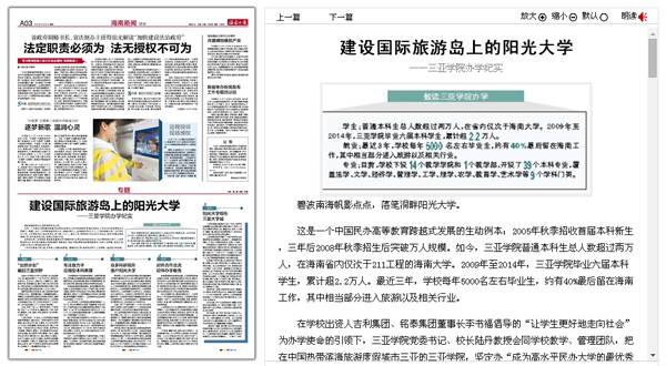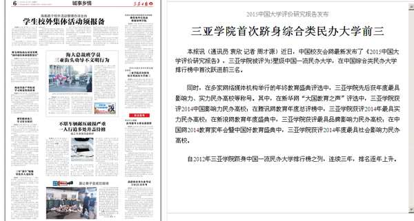 《建设国际旅游岛上的阳光大学》海南日报专题反映我校办学纪实