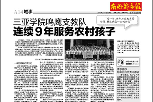 《南国都市报》头条报道我校鸣鹰支教队连续9年服务农村孩子