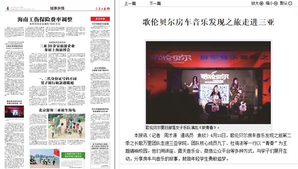 《三亚日报》报道歌伦贝尔房车音乐发现之旅走进我校