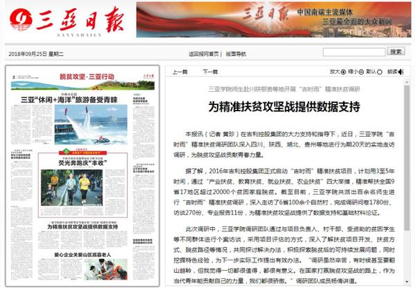 《三亚日报》报道我校师生赴川陕鄂贵等地开展“吉时雨”精准扶贫调研
