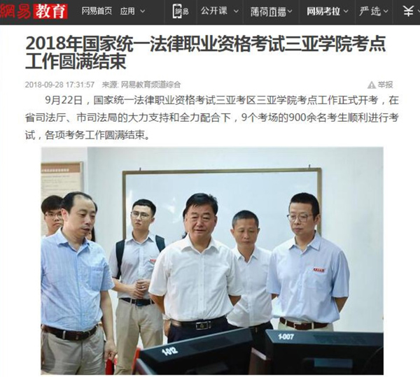 网易教育报道2018年国家统一法律职业资格考试三亚学院考点工作圆满结束