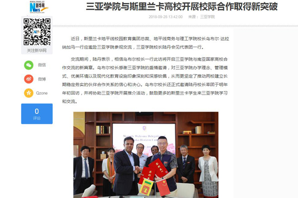 新华网报道我校与斯里兰卡高校开展校际合作取得新突破