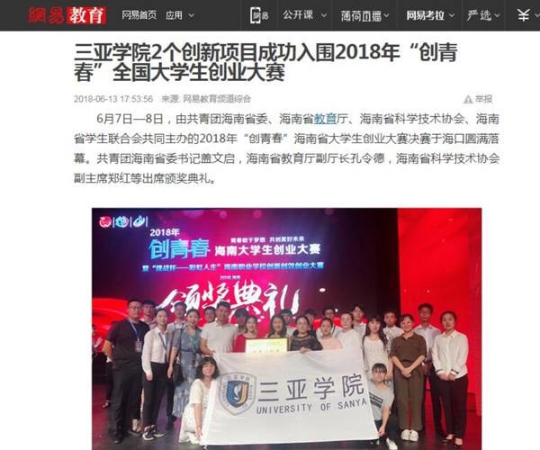 网易教育报道我校2个创新项目成功入围2018年“创青春”全国大学生创业大赛