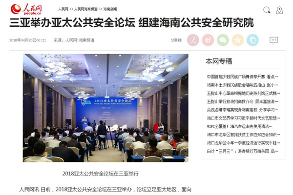 人民网报道三亚举办亚太公共安全论坛 组建海南公共安全研究院