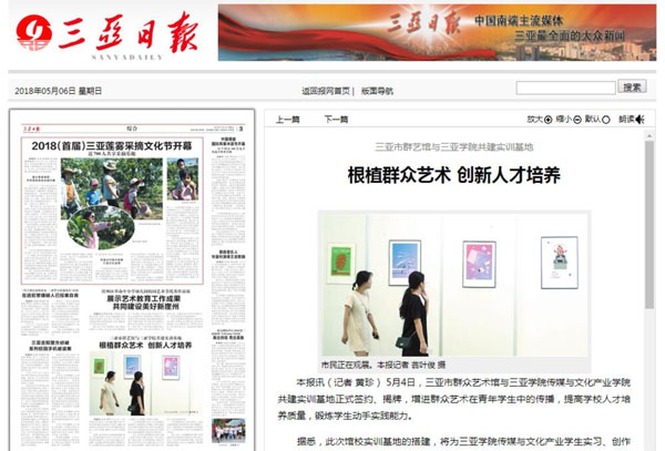 《三亚日报》报道三亚市群艺馆与我校共建实训基地