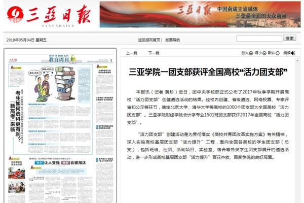 《三亚日报》报道我校财经学院团支部获评全国高校“活力团支部”