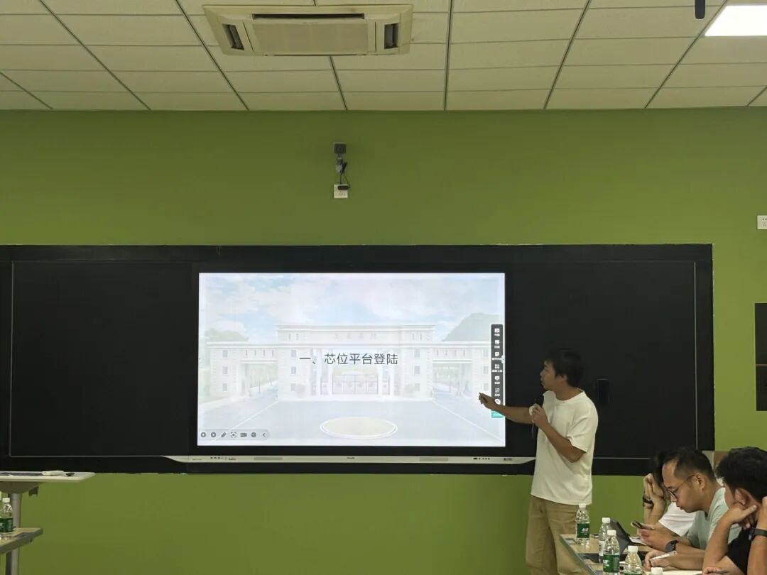 随后,应用科技处刘金平老师就芯位平台的具体操作流程进行了系统讲解。他围绕平台登录、班级管理、课件开放时间设置、考试与成绩权重配置、学习数据统计与导出等关键环节进行了详细地说明。刘老师特别指出,平台可以根据不同学院实验室特点实行差异化章节设置,管理学院、艺术设计学院、新能源与智能网联汽车学院与健康产业管理学院课程内容经精简优化,更贴合实际需求;其余11个学院则沿用基础安全课程,内容完整。
