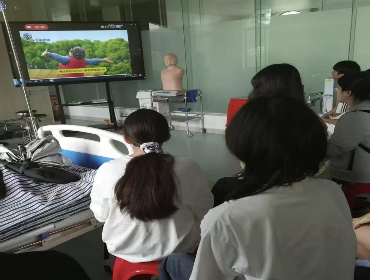 2025年10月31日健康医学院/健康产业管理学院许立华教授主讲的T模块教学在实验室展开,围绕“AI赋能护理学”展开专题研讨。许教授在课堂上将“中国老龄化”这一宏大的社会图景徐徐展开时,作为一名护理学新生,内心所受的震撼是前所未有的。这不再是一个遥远的名词或新闻中的数字,它仿佛化为了未来将要面对的一个个具体的生命、一个个家庭的悲欢。这堂课,如同一记响钟,敲醒了我对专业、对未来、对自身责任的思考。当我国60岁以上老年人口突破3.1亿、占比超22%的“银发浪潮”成为时代背景,护理学生们通过数据剖析、技术探讨与职业规划,在老龄化应对与AI技术融合的命题中,明晰了护理专业的成长方向。