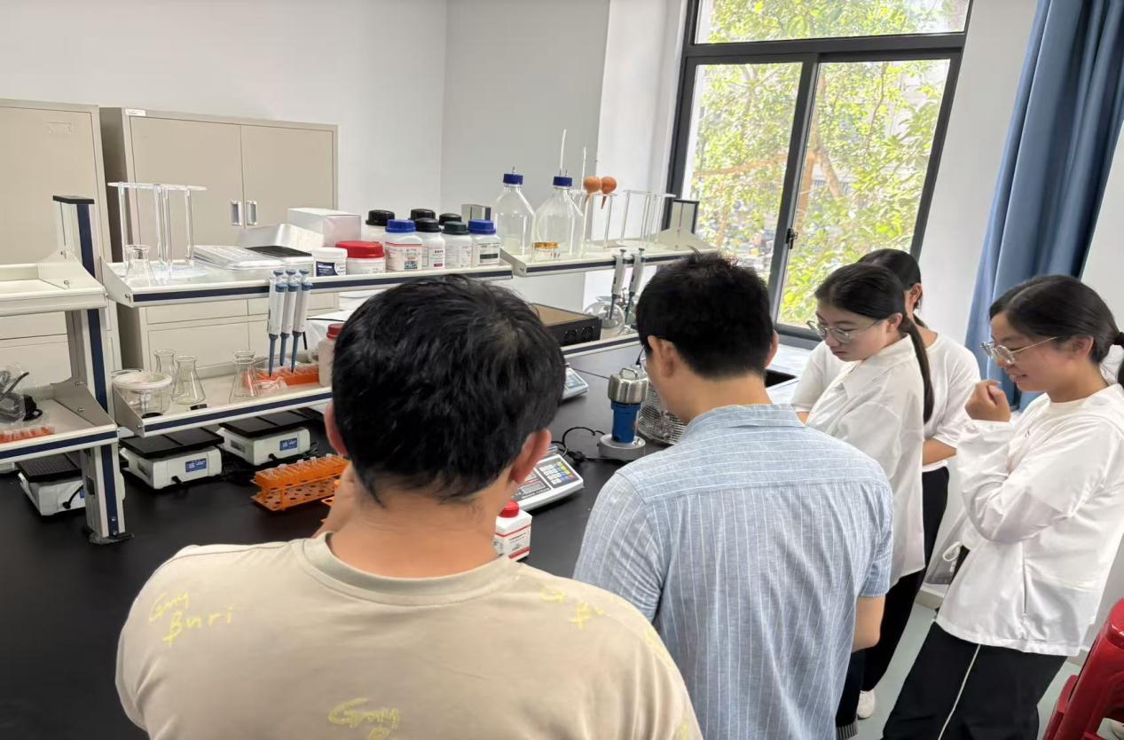 为了让同学们能够更加直观而深刻地感受到科学实验过程的严谨性与规范性,庄峰锋博士亲自带领着充满好奇心的同学们走进设备齐全的现代化实验室,耐心细致地向大家介绍每一件实验器材的用途和操作规范。在庄峰锋博士的指导下,同学们不仅能够近距离观察各种精密的实验仪器,更有机会亲手触摸并了解这些专业设备的使用方法和注意事项。通过这种沉浸式的体验方式,同学们对实验操作的标准化流程和科研工作的严谨态度有了更为全面和深入的认识。