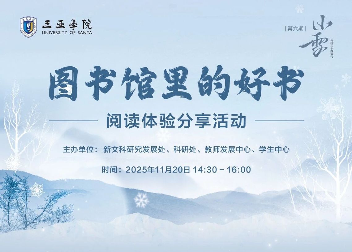 小雪将至,书香正浓。11月20日下午,由新文科研究发展处、科研处、教师发展中心、学生中心联合主办的“图书馆里的好书”第六期阅读体验分享活动在鹭溪·艺境—USY人文艺术素养协同发展中心如期举行。